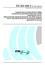 Digitálna sieť integrovaných služieb (ISDN); Zamedzenie identifikácie prepojené linky (COLR) Doplnková služba; Digitálneho účastníckeho signalizačného systému číslo jedna (DSS1); Časť 3: Špecifikácia štruktúry súboru skúšok a cieľov skúšok (TSS & TP) pre užívateľa